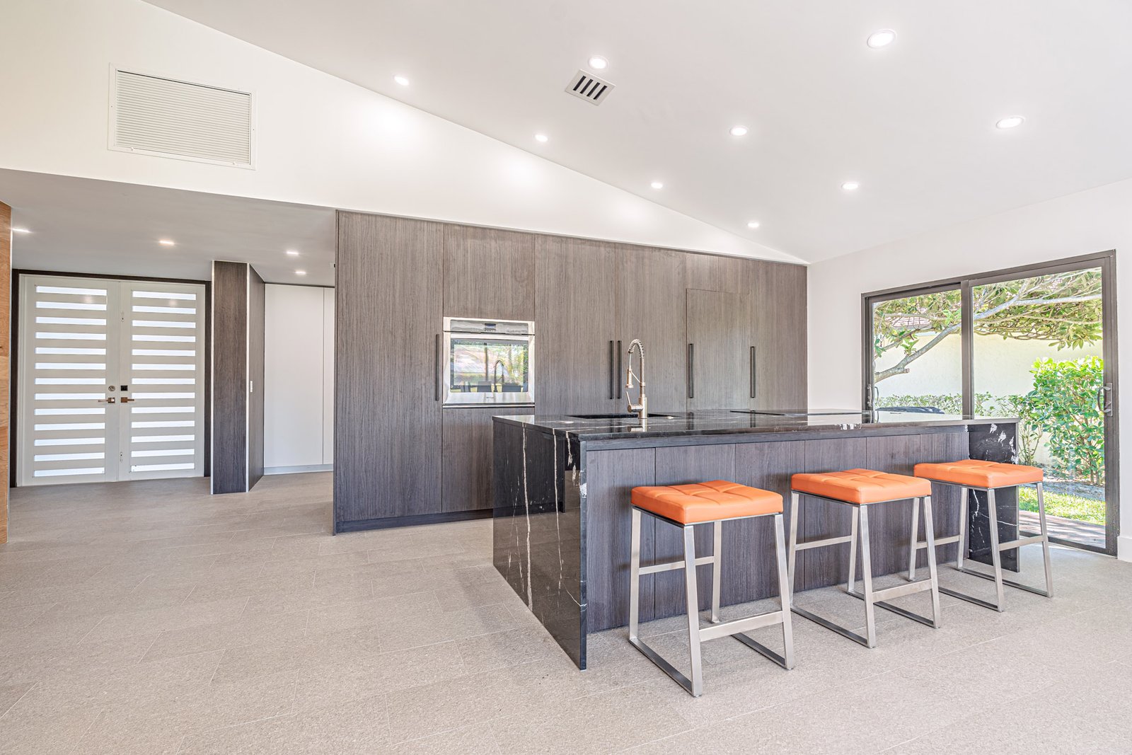 Discover modern sophistication in this meticulously fully remodeled 2-bedroom, 2-bathroom residence located in the heart of the prestigious Eastpointe Country Club. Every detail of this home has been elevated, featuring Italian porcelain tile throughout, custom designer lighting, and high ceilings that create an airy, expansive atmosphere. The gourmet kitchen is a culinary masterpiece, anchored by a large center island and outfitted with high-end European cabinetry, a Miele refrigerator, and a premium gas range. For total security and peace of mind, the home is protected by complete impact glass windows and sliding doors.